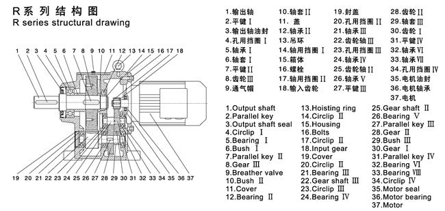 3、R系列斜齒輪硬齒面減速機(jī)選用優(yōu)質(zhì)鍛鋼材料,鋼性鑄鐵箱體,齒輪表面經(jīng)過高頻熱處理;