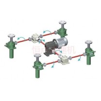蝸輪絲桿升降機組合平臺 一般都是4臺絲桿升降機,兩臺T系列齒輪換向器,和中間一臺RV鋁合金蝸輪蝸桿減速機或WP蝸輪蝸桿減速機減速機帶電機.起升的重量可以根據(jù)客戶來選型.